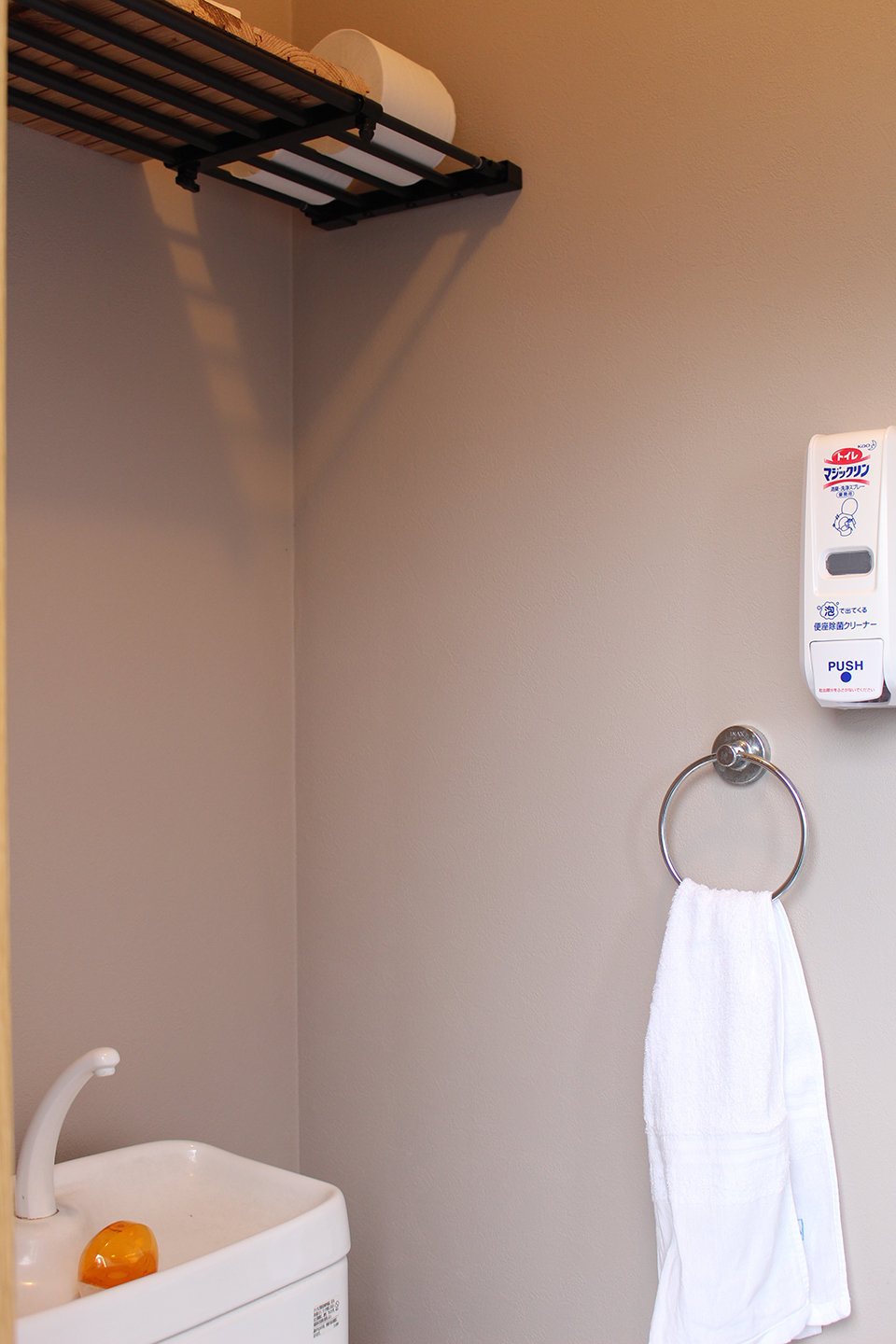 落ち着いたカラーの壁紙に張り替え、利用されたお客様からご意見をいただいておりました鏡も取り付けました。
